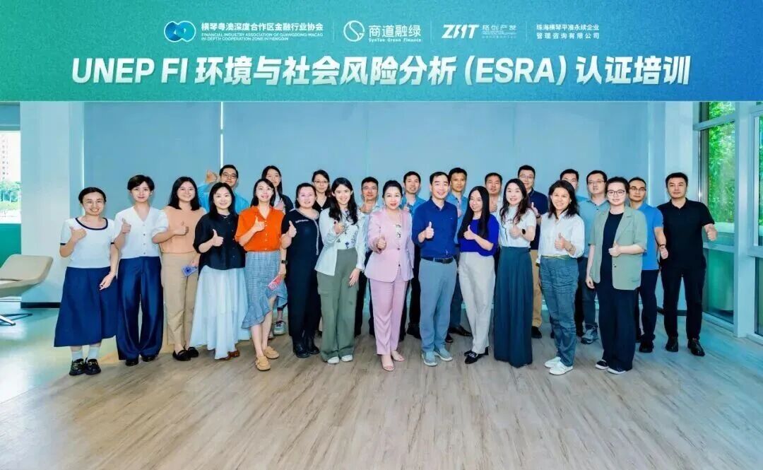 2025年9月18-19日,为期两天的联合国环境规划署金融倡议UNEP FI环境与社会风险分析(ESRA)认证培训在横琴粤澳深度合作区成功举办。本次培训由横琴粤澳深度合作区金融行业协会与北京商道融绿咨询有限公司共同主办,珠海横琴平准永续企业管理咨询有限公司承办,珠海格创科技产业发展有限公司提供支持。培训吸引了来自银行、保险、资管、融资租赁、商业保理等各类金融机构的高管人员、绿色金融相关岗位专业人员参与。学员们通过系统学习与深入交流,全面提升了环境与社会风险管理的专业能力。