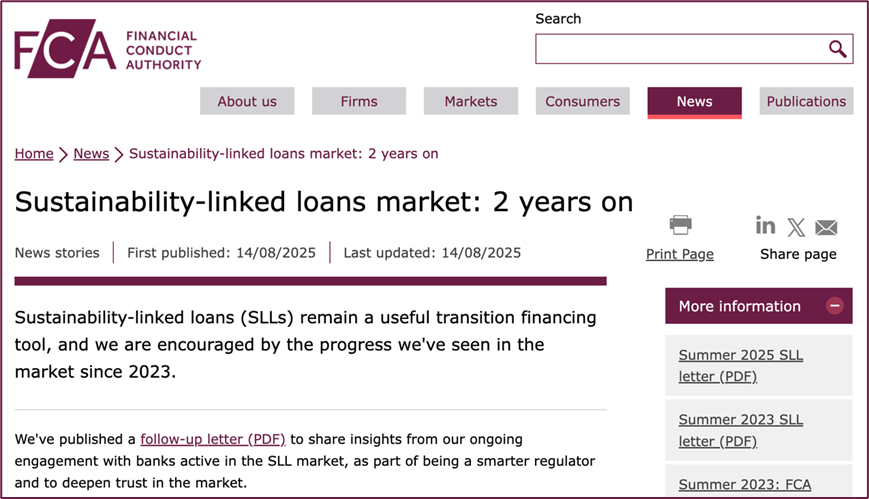 值得提醒的是,可持续挂钩金融产品也不是毫无风险。2023年,英国金融行为监管局(FCA)对可持续挂钩贷款市场进行评估,指出这类产品在市场诚信、可信度、激励机制和利益冲突等方面存在不足。举例来说,在一些挂钩贷款中,关键绩效指标(KPI)和可持续绩效目标(SPT)设计不当,缺乏雄心,这样实际上是不会对企业转型产生足够的刺激,起不到挂钩贷款的激励效果。不论是银行还是企业都会面临“漂绿”风险。注意到这些问题之后,FCA的做法是与市场的主要银行保持建设性的沟通,引导市场有序发展。2025年8月,FCA发布了可持续挂钩贷款市场的两年工作回顾(如下图),认为经过两年的努力,英国可持续挂钩贷款市场已趋于成熟、实践更佳、产品结构更稳健,挂钩贷款已经成为转型金融的重要工具。